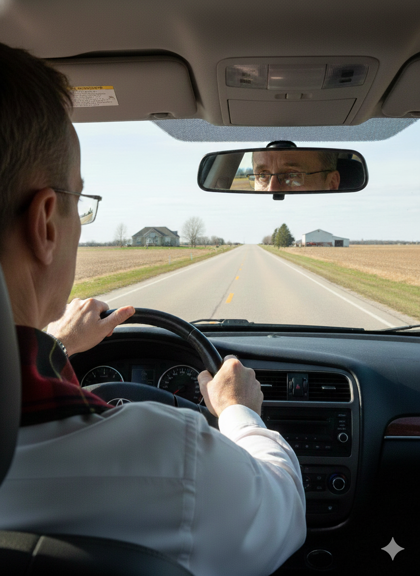 With no other cars around I pulled back in behind him, and I watched him race down the road. When I crested the hill I could see how he’d caught up with vehicles farther ahead and tailgated them, his brake lights flashing on and off in the distance as he attempted to hurry them along.